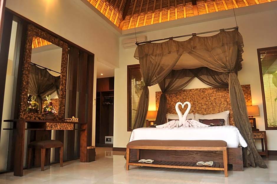 Fitted with marble flooring, villa features a private pool with gazebo, a well-equipped kitchen and a living room. Bathroom has a bathtub and outdoor garden shower. It also comes with a flat-screen TV and free WiFi. Guests enjoy: - Daily choice of breakfast at Mahagiri Restaurant - Welcome drink and cold face towel upon arrival - 1-time floating breakfast in the private pool - 1-time lunch at Mahagiri Restaurant - 1-time romantic candle-lit dinner in the villa with wine - Seasonal tropical fresh fruit in the villa - Honeymoon cake - 2 bottles of mineral water per room everyday - Special decoration with flowers upon arrival - Mahagiri Dreamland special gift - Complimentary unlimited use of WiFi access in villa and public areas - 90 minutes massage treatment for 2 people at Bali Dewi Spa